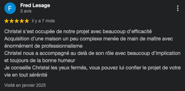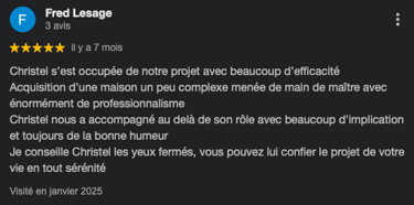 "Je vous accompagne depuis 2014 dans vos projets immobiliers avec une approche humaine, transparente et efficace."
